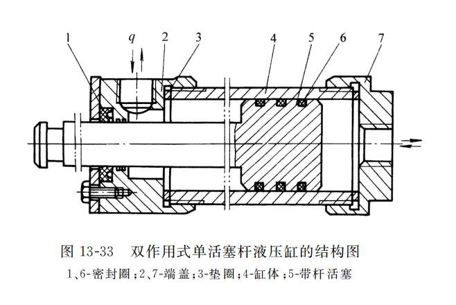 活塞式液压缸可分为单杆式和双杆式两种结构,其固定方式由缸体固定和活塞杆固定两种,按液压力的作用情况有单作用式和双作用式。在单作用式液压缸中,压力油只供液压缸的一腔,靠液压力使缸实现单方向运动,反方向运动则靠外力(如弹簧力、自重或外部载荷等)来实现;而双作用液压缸活塞两个方向的运动则通过两腔交替进油,靠液压力的作用来完成。